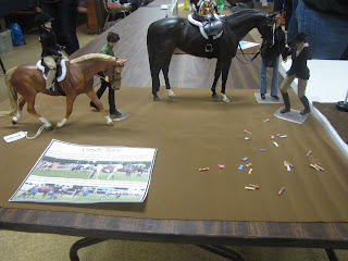 Halestorm did a riding lesson entry. Now I do understand that people are not in show clothes for lessons. When I made the card for this entry years ago it does say that Mary (I think that was the name I used) is already warming up her horse and likes to dress like she is at a show. It also says that the instructor is holding the horse for so and so to mount. This was basically another excuse to get Halestorm and Enchanted Eve on the table together. And since Eve is so tall it was a great excuse to use my mounting block from Enterprise props for the first time ever. Performance junkies know that we often buy things with the intention of finding a way to use them "some day". This entry also didn't place but again, it was fun to set up.